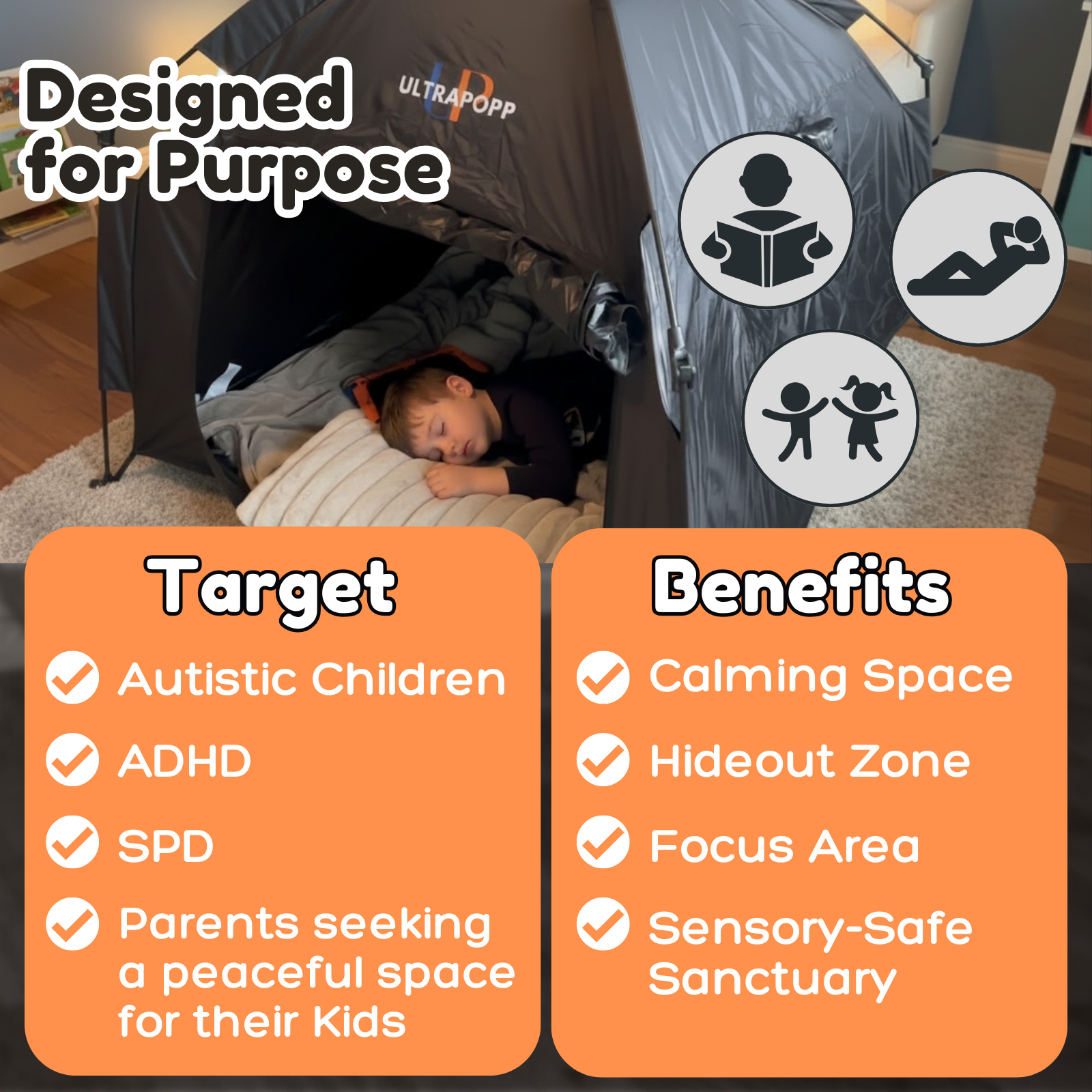 ULTRAPOPP Sensory Tent for Kids, Easy Setup Blackout Play Tent for Autism ADHD SPD OCD, 39x39x39 in