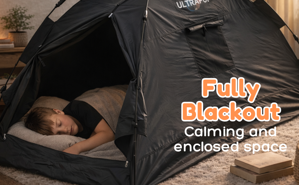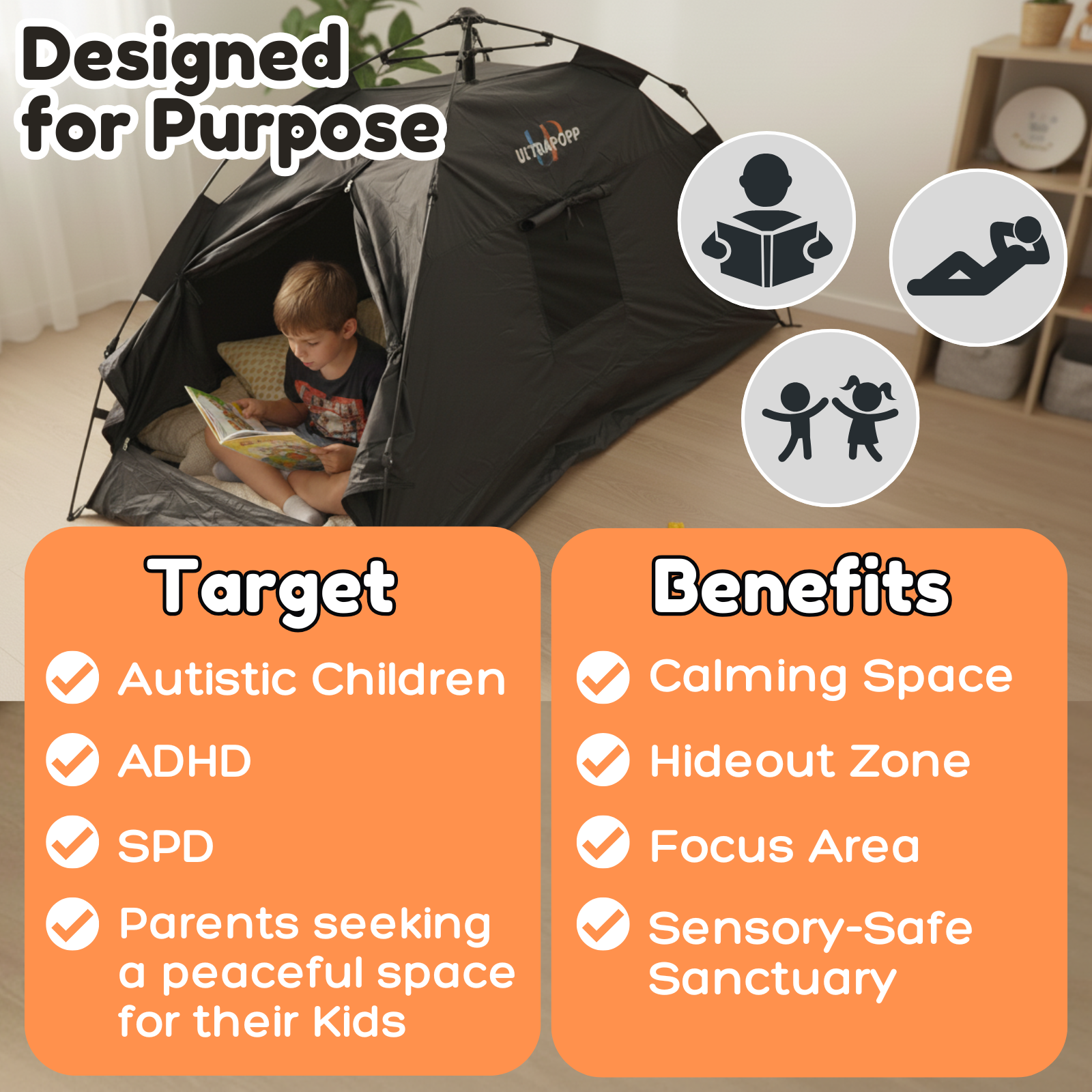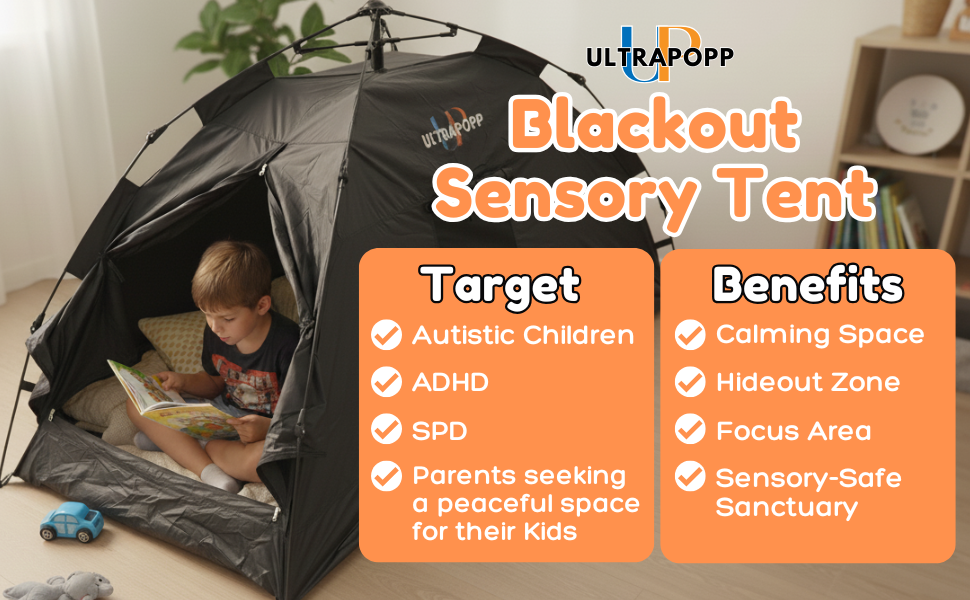 ULTRAPOPP Sensory Tent for Kids, Easy Setup Blackout Play Tent for Autism ADHD SPD OCD, 39x39x79 in